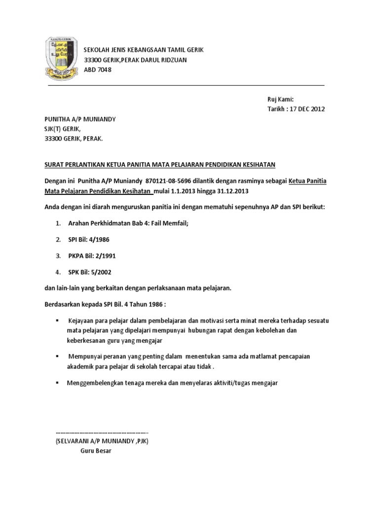 15 contoh surat pelantikan ketua panitia m/pelajaran dengan ini en.