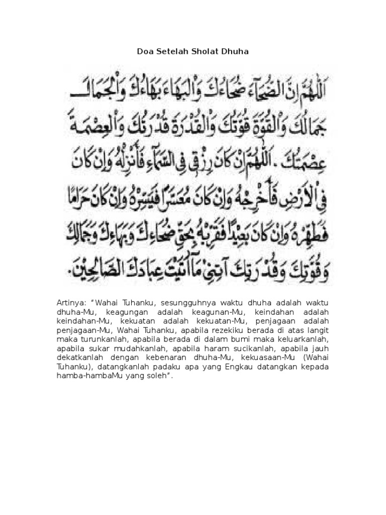 Kalau belum baca artikel ini ya sampai selesai, biar kita menjadi lebih semangat lagi dalam. Setelah melakukan sholat dhuha dianjurkan untuk membaca doa sholat dhuha yang secara lengkap beserta artinya dijelaskan dalam artikel ini. Bacaan doa sesudah shalat ashar yang telah dibuatkan secara lengkap dengan bahasa arab, terjemahan latin dan artian dalam bahasa indonesia diatas bisa kalian amalkan atau bacakan setelah selesai mengerjakan sholat ashar karena bacaan doa setelah sholat ashar diatas. Itulah beberapa manfaat dan keutamaan shalat dhuha. Shalat dhuha ini adalah shalat yang istimewa karena banyak sekali manfaat dan keutamaannya. Tata cara melakukan sholat dhuha. Berikut ini merupakan rangkaian struktur teks anekdot yang. Jika salat duha dikerjakan lebih dari dua rakaat, maka pengerjaannya diutamakan sekali salam untuk dua rakaat. Ada rangkaian doa yang bisa anda baca. Bacaan doa setelah sholat dhuha dalam rumi. Maka mari kita simak beberapa halnya dibawah ini. Bacaan doa setelah sholat dhuha lengkap dengan tulisan latin dan artinya. Berikut ini bacaan doanya, tulisan arab, latin, terjemah dan tafsirnya.