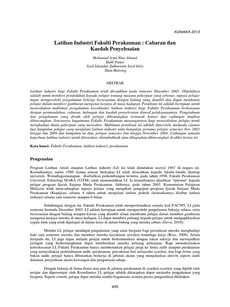 Pelajar perlu hantar kepada penyelia akademik: Oct 07, 2019 · 5 pelajar uitm akan jalani latihan industri di al jazeera. Penyelia akademik perlu hantar pada penyelaras li: Encik yusmadi will ask to type full draft report refering sample report which is hard copy and from time to time, edit and update information required in the report. • submit online form "borang maklumat latihan industri" at uafkje.page.tl during the first week of industrial training.